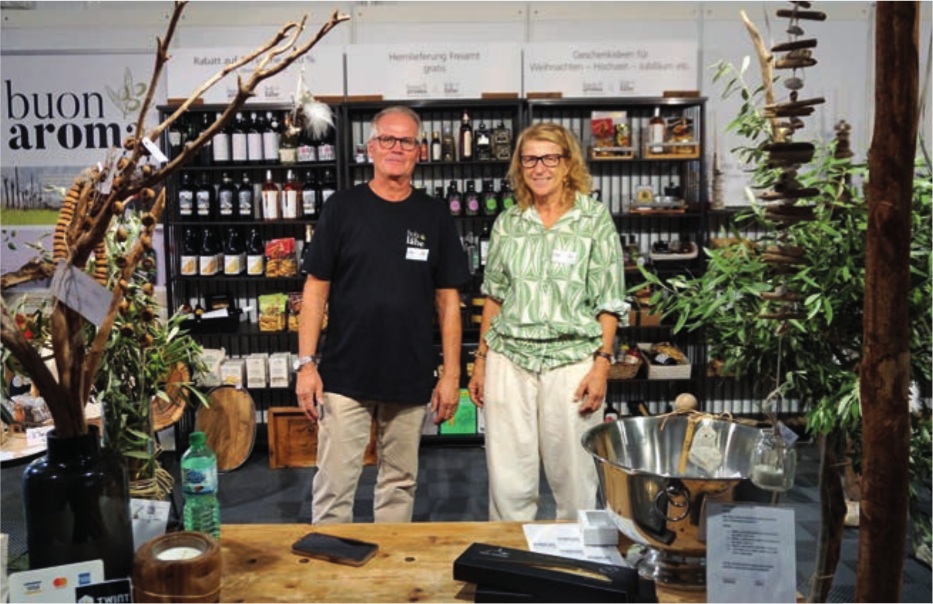 «Buonaroma» ist die pure Leidenschaft der Nussbaumers, erst 2021 zur Aktiengesellschaft gewachsen. Sie holen die besten Produkte aus der italienischen Marche bei ausschliesslich ihnen sehr gut bekannten lokalen Produzenten – kleine Familienbetriebe – ab und verzollen selber, was die sympathisch moderaten Verkaufspreise rechtfertigt. Die Marche übergeht in die Abruzzen, dort durchmischen sich Getreidefelder mit Weinbergen und Olivenhainen, Weizen und Wein. Nussbaumers Refugium ist mittendrin.