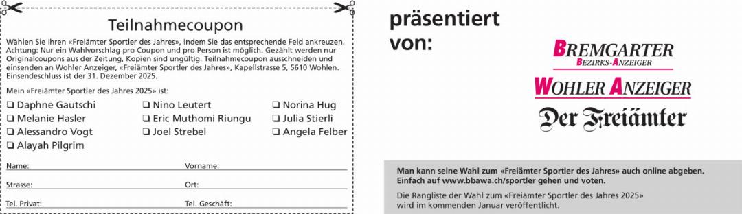 Abstimmen online unter www.bbawa.ch/sportler oder per Coupon