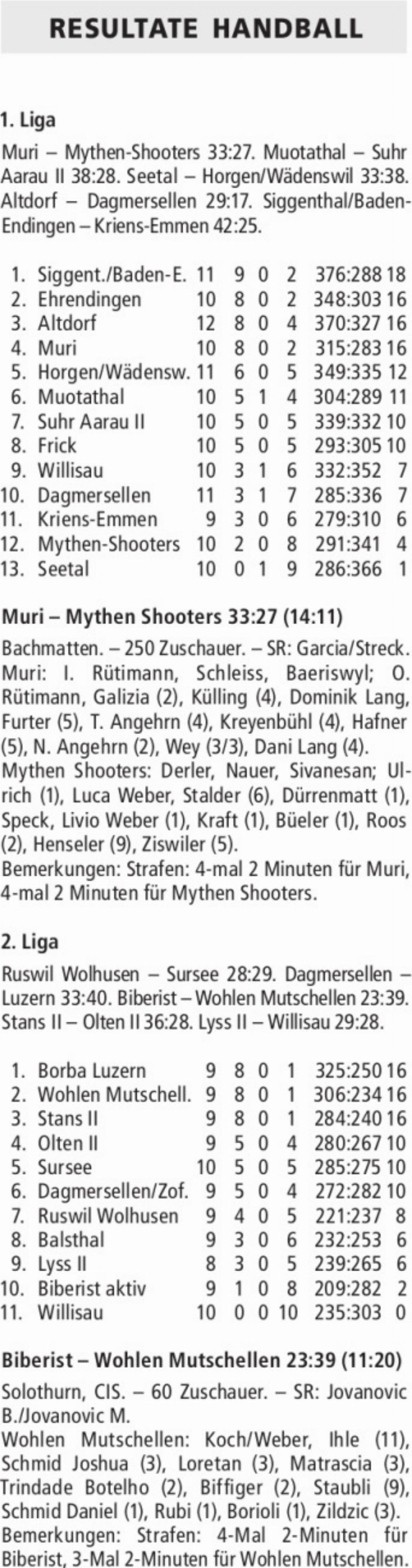 RESULTATE HANDBALL