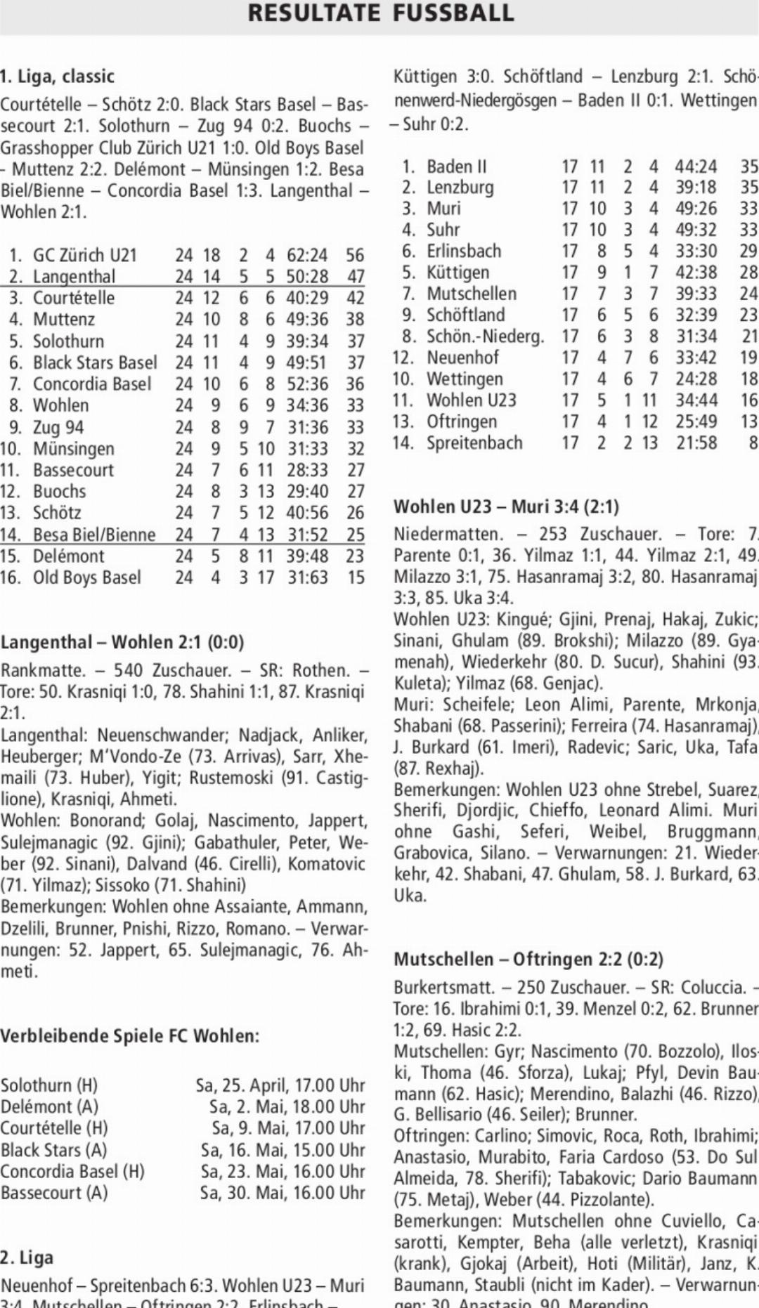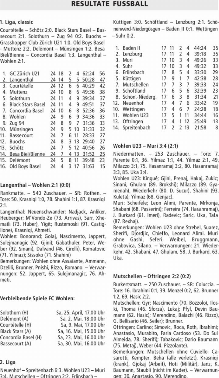 RESULTATE FUSSBALL