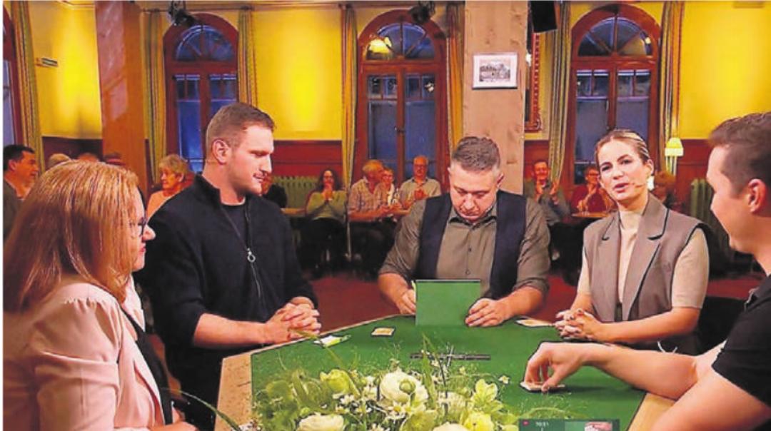 Für sie als Fan der Sendung ging mit der Teilnahme ein Traum in Erfüllung. Sie schaue die Sendung schon ewig, gibt sie zu. «Mir gefällt die Mischung zwischen Gesprächen, Unterhaltung und Jassen. Es ist einfach spannend mitzuraten, wie viele Punkte die Teilnehmer mit ihren Karten machen», erklärt sie ihre Begeisterung. «Sie ist wirklich gut, sie kann jedes Mal sagen, wie viele Punkte möglich sind. Und wenn es anders kommt, kann sie auch den Fehler des Mitspielers benennen», so das Lob von Urs. Wobei es beim Differenzler auch etwas Glück braucht. Man ist eben davon abhängig, welches Ziel die anderen am Tisch verfolgen. Und genau das weiss man nicht. Dass sie jetzt dreimal gewonnen hat, ist trotzdem kein Zufall. Angi Stimpfl trainiert viel. Mehrheitlich online. «Ich habe nur eine Runde, mit der ich mich regelmässig zum Jassen treffe», sagt sie. Und Ja, vor dem Auftritt habe sie etwas mehr gespielt als sonst. Sogar Statistiken erstellt. Es hat sich gelohnt.