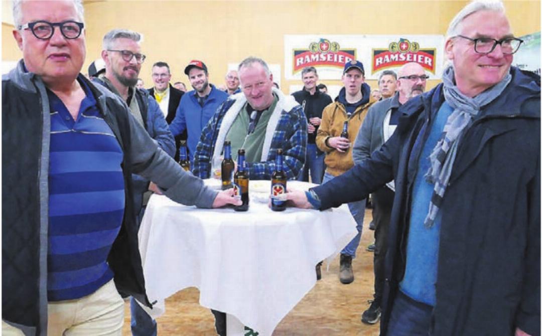 Und dann folgte die letzte Verschiebung. Treffpunkt Landi-Event-Raum zur Vorstellung der Neuen mit anschliessender Apéro-Runde. Peter Mäder und Alex Meier mit ihrem Architekturbüro, Roland Moser im Bereich Ausbildung, Beratung, Logistik und Sicherheit, Christian Wehrli und seine Metallarbeiten nach Mass und Mathias Hilfiker, Dienstleistungen in Land- und Forstwirtschaft, stellten sich als neue Gewerbler im Dorf vor. Übrigens, die Gastgeber-Firma für 2027 sei schon bekannt, liess Präsident Wyrsch durchblicken, aber mehr nicht. Aus zuverlässiger Quelle war zu erfahren, dass noch bis spät in die Nacht weiter debattiert und diskutiert wurde.