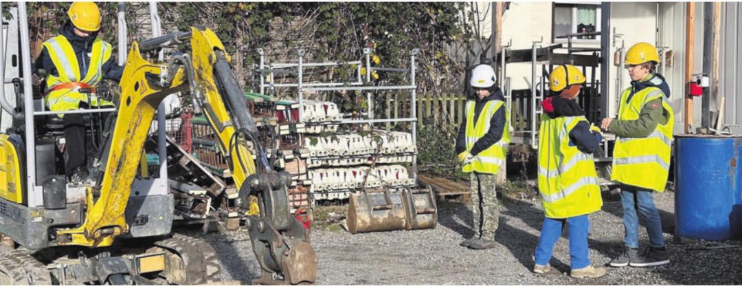 Am Vormittag durften die Kinder bei einem Postenlauf selbst aktiv werden. Dabei fuhren sie Minibagger, erstellten eine Pflästerung sowie ein Mauerwerk, das sie anschliessend besprayten. Am Nachmittag besichtigten sie die Baustelle in Mellingen, wo Decken- und Wandschalungen erstellt wurden.