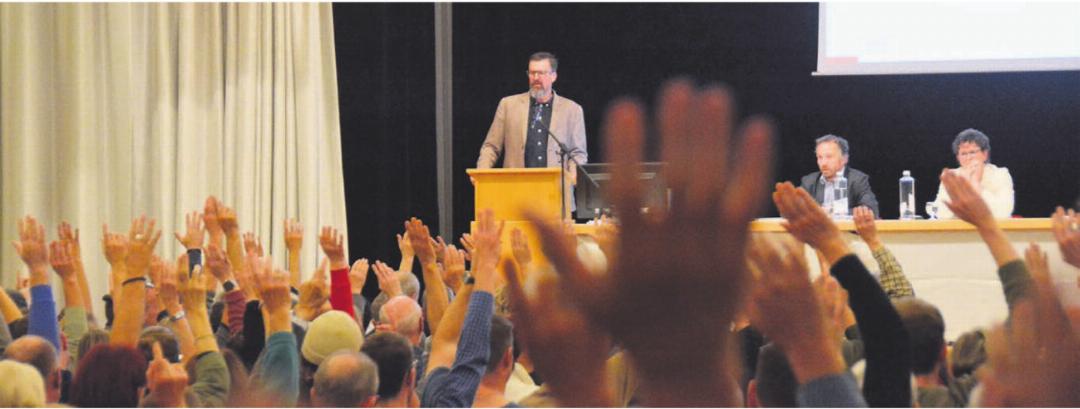 Der Stein ist quasi hörbar. Der Stein, der Beat Küng beim Blick in den sehr vollen Festsaal vom Herzen fällt, als ganz viele Hände in die Höhe gehen und damit Ja sagen zu den knapp zwölf Millionen Franken für den Ausbau und die Sanierung der Badi. Vorausgegangen war eine detaillierte Vorstellung des Projekts. Bis ins Jahr 1980 ging Küng dabei zurück. «Als die Badi gebaut wurde. Ein mutiger und weitsichtiger Entscheid, wie wir ihn heute auch fällen können.» Denn mittlerweile sei vieles erneuerungsbedürftig. «An der Front funktioniert alles, aber im Hintergrund ist vieles schwierig.» Sanitäre Anlagen, Gastronomie, Garderoben, Eingang.