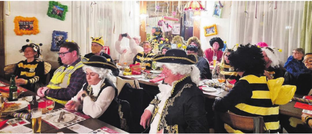 Während dieser Fasnacht sind die Beinwiler Hexen als Bienen unterwegs. Fleissig wie diese sind sie ausgeschwärmt und haben gesammelt, was im Dorf passiert. Sie haben die Gemeinde aber auch fasnächtlich bewegt. Eine Kostprobe davon zeigen sie als Tanzeinlage den gutgelaunten Besuchern des ausgelassenen Abends. «Wir haben gute Laune überall», singen sie lautstark und überzeugend mit dem ganzen Saal. Die Stimmung ist ausgelassen und fröhlich, als die drei Schnitzelbänke mit ihren Produktionen punkten. Kilian Rosenberg gilt als Geheimtipp. Er erweist sich als gut informierte Drohne.