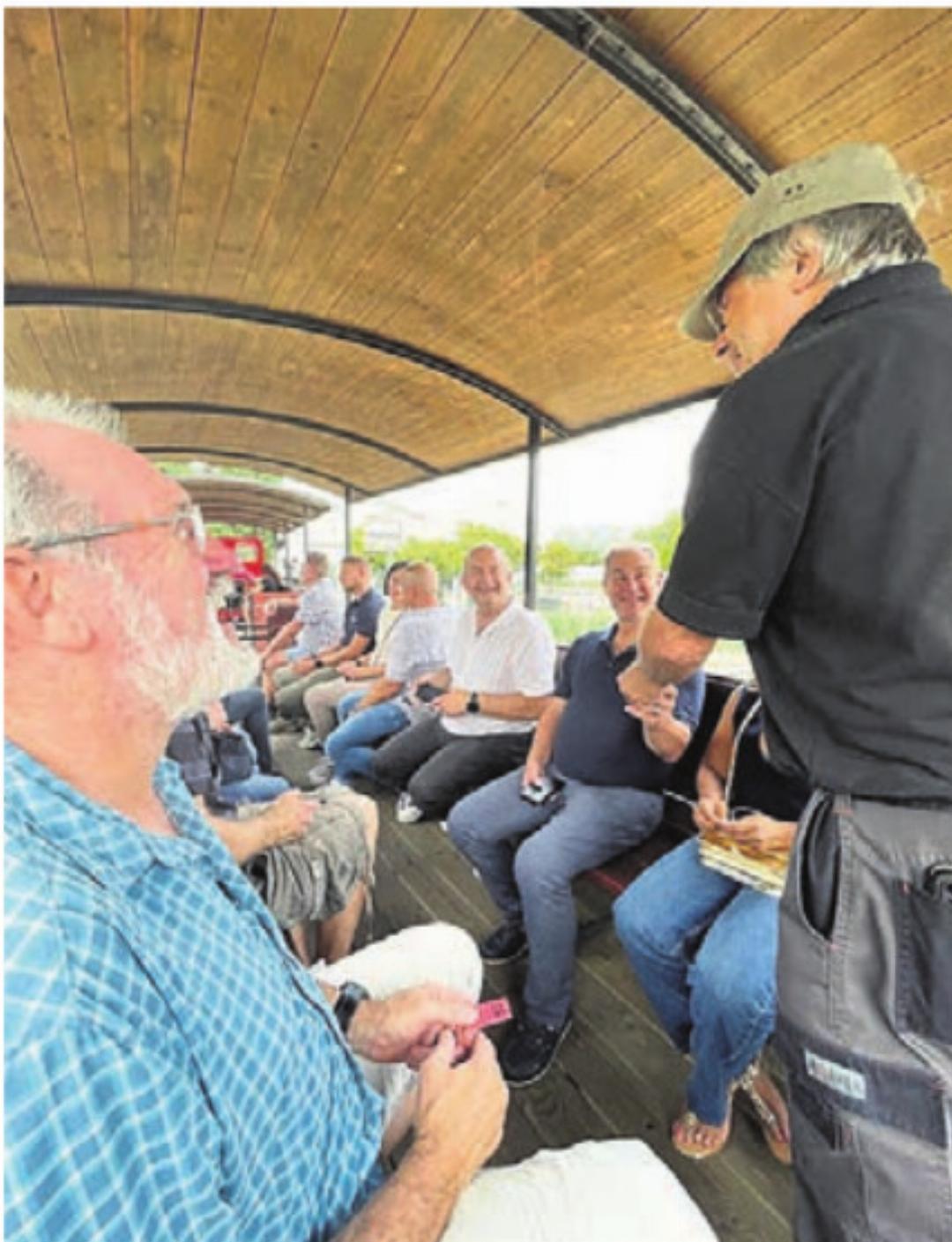 Danach folgte ein Referat zum Thema «Insektenfreundlicher Garten». Hier wurde allen bewusst: Ohne die kleinen Krabbler läuft im Garten gar nichts. Wer hätte gedacht, dass Marienkäfer und Co. lästige Plagegeister ganz ohne Chemie in Schach halten können? Damit die neuen Erkenntnisse nicht gleich wieder verschwinden, gab es anschliessend im Gewächshaus einen Apéro – der perfekte Ort, um bei einem Glas Wein mit Flammkuchen noch tiefer in die Geheimnisse von Blattlaus, Biene und Blütenpracht einzutauchen. Ein weiteres Highlight: die nostalgische Zulauf-Baumschul-Bahn. Mit viel Liebe gepflegt, tuckerte die Gruppe mit ihr rund 20 Minuten durch das weitläufige Gelände. Manch einer staunte nicht schlecht, wie riesig die Baumschule tatsächlich ist – und das bequem vom Waggon aus, ganz ohne müde Füsse.