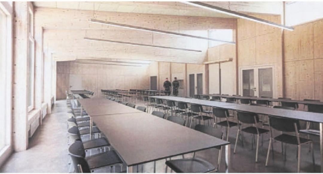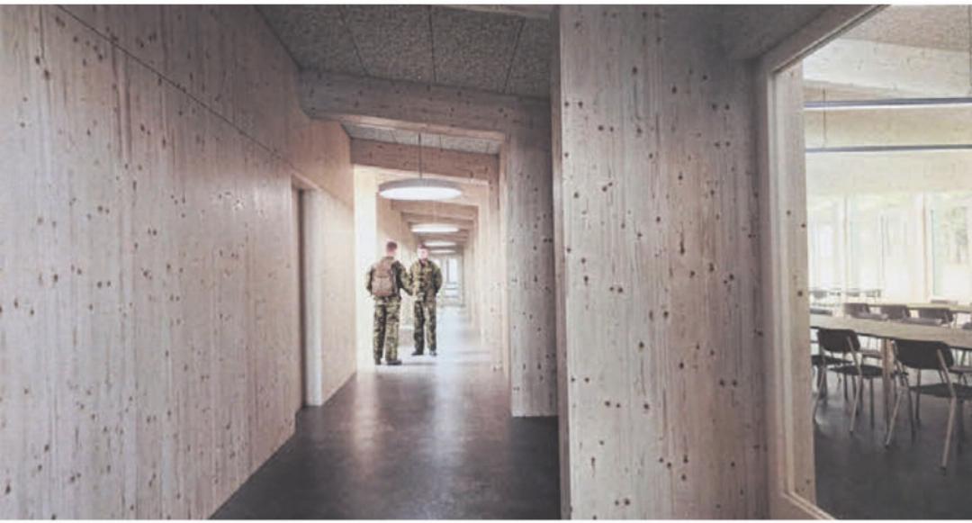 Besagtem Gesuch ist zu entnehmen, dass die Armee gewillt ist, insgesamt fast 10 Millionen Franken in den Übungsplatz Bettwil zu investieren. 5,135 Millionen soll allein der eingeschossige Ersatzneubau beim Zugang zur Anlage kosten. Errichtet in Holzskelettbauweise auf einem Betonsockel, umfasst er insbesondere Wachund Aufenthaltsräume – Letztere flexibel unterteilbar – und ersetzt verschiedene Kleinbauten. Das Bauprojekt ist im Minergie-Standard A-Eco geplant. Die benötigte Wärme sollen Wärmepumpen mittels dreier Erdsonden aus 220 Metern Tiefe liefern, vom Dach sollen PV-Panels Sonnenstrom erzeugen. Die Anlage deckt mit 522 m2 fast die ganze Dachfläche ab. Das bringt eine Leistung von 111 kWp, erwartet wird ein jährlicher Stromertrag von 107 000 kWh. Nördlich vom Neubau rundet ein gedeckter Platz, unter anderem fürs Schuheputzen, den geplanten Neubau-Teil ab.