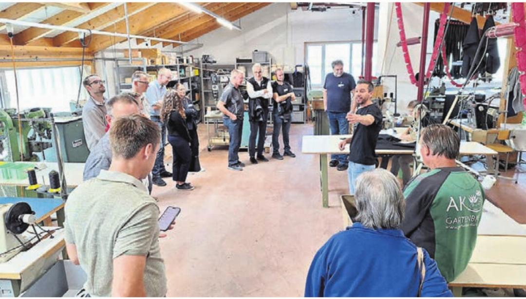 In diesem Jahr fand sich eine stattliche Anzahl von 50 Personen zum Gewerbetreff bei Meili Production AG ein. Nach einer kurzen Begrüssung durch Gemeinderätin Simone Diem und CEO Ady Meili fand ein spannender Rundgang durch die Betriebsräume statt, in welchen unter anderem massgeschneiderte Betten für Wohnwagen und Schiffe hergestellt werden. Auch Säcke für Alphörner werden genäht. Sehr spannend für die Teilnehmenden war, die Wasserstrahlschneidemaschine in Betrieb zu sehen.