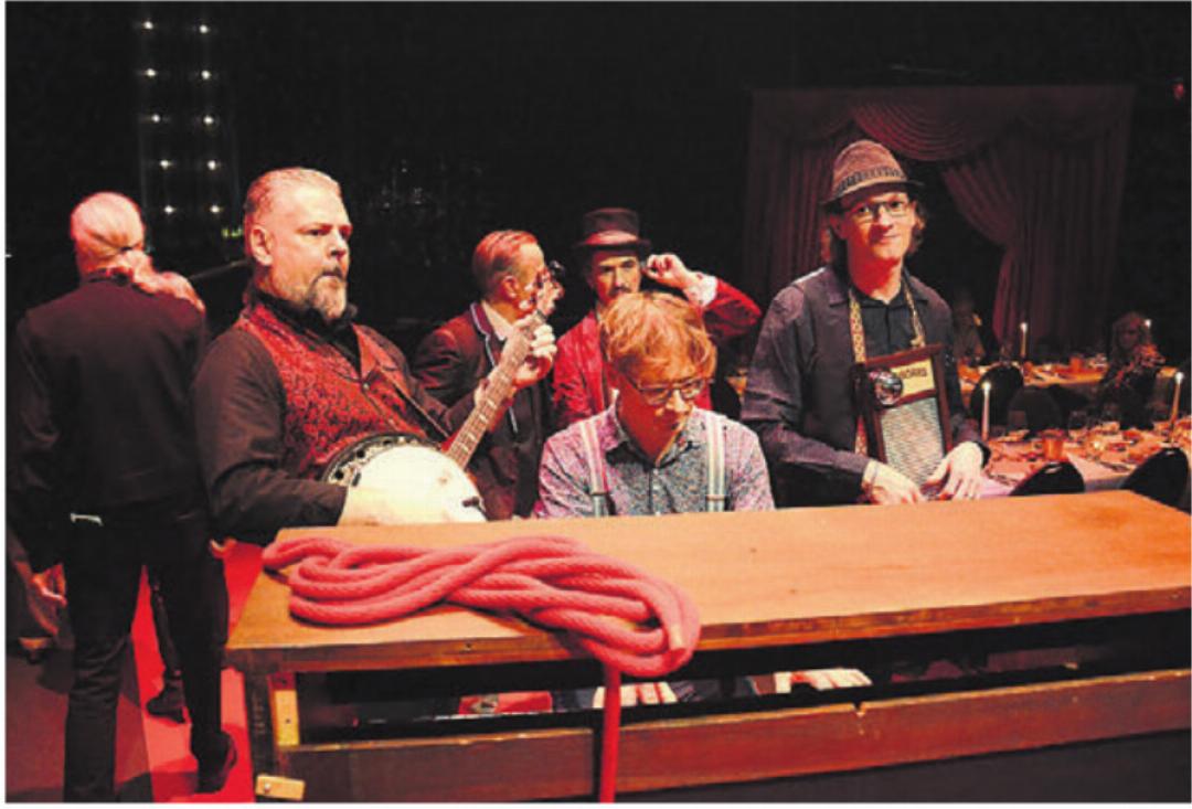 Beide Nummern finden mitten im Saal direkt neben den Besuchern statt – eine der grossen Stärken des Variétés. Das wird schon zu Beginn spürbar, wenn die Artisten beim Apéro durch die Zuschauer wuseln und sie einbeziehen. Oder durch die Tatsache, dass sie auch beim Service dabei sind – so nahe kommt man den Künstlern doch selten. Ein eingespieltes Team sind nicht nur beim Servieren Frida Guadalupe Velasco Lopez aus Mexiko und Federico Javier Cabruja Insua aus Argentinien, die zu Boden und in der Luft erstaunliche Akrobatik präsentieren. Und wie alle anderen Artisten auch bei den temporeichen Gruppennummern und als Musikanten im Einsatz sind. Wer hier auftreten will, der muss vielseitig sein.