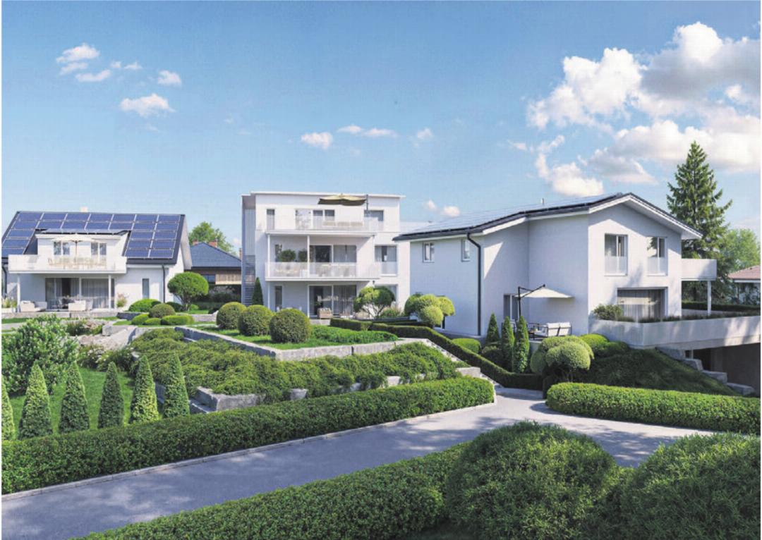 Das begeistert: Dank durchdachter Planung bieten die beiden Einfamilienhäuser und das Dreifamilienhaus eine Rundumsicht auf den Rietenberg im Norden, den Homberg im Westen, die Voralpen im Süden und den Lindenberg im Osten. Lediglich der Hallwilersee lässt sich nur erahnen.