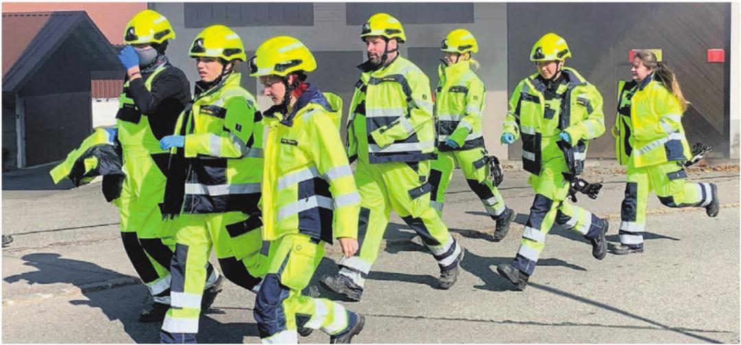 Am Samstagnachmittag steigt aus dem Gebäude der Elektro Budmiger Rauch auf – glücklicherweise nur für eine Übung. Wie im Ernstfall treffen die Rettungskräfte gestaffelt am Einsatzort ein. Der Einsatzleiter verschafft sich zuerst einen Überblick und plant die weiteren Schritte. Immer mehr Feuerwehrleute treffen ein und scheinen sofort zu wissen, was zu tun ist. Schon dringt der Atemschutz in das vernebelte Gebäude ein, um die erste Person aus der Gefahrenzone zu bringen. Das kann gefährlich sein. «Die Sanitäter vor Ort haben meist mehr mit den Feuerwehrleuten zu tun als mit den Brandopfern», scherzt der Offizier Roger Schumacher, der die Übung kommentiert.