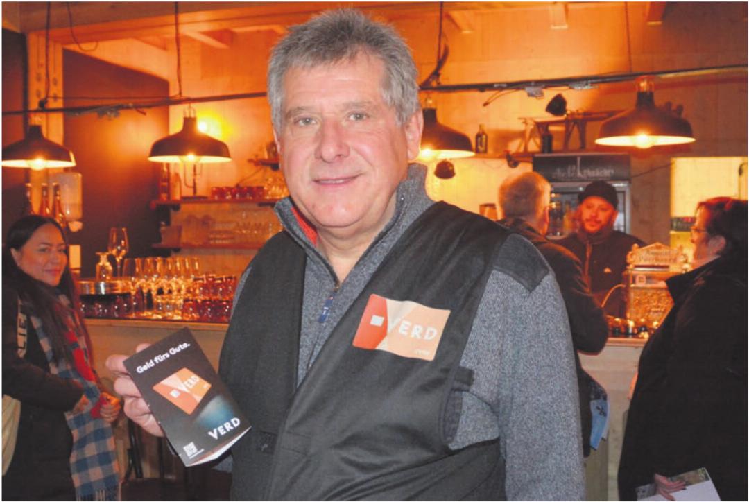 Vor der Fragerunde hatte Christian Wohlwend die Verd-Karte vorgestellt. Auf diese können Kunden vorgängig maximal 3000 Franken laden. Sie funktioniert danach wie Bargeld in den Geschäften, die bei Verd mitmachen. «Die Karte ist kostenlos. Die Geschäfte investieren zirka 3 Minuten in die Anmeldung und zahlen nur, wenn tatsächlich etwas mit der Karte bezahlt wird.» Abgebucht werde über eine Installation auf den normalen Postkartenzahlgerät. Fallen bei Kartenzahlungen und Twint für die Verkäufer Gebühren von mehr als einem Prozent an, sind es bei Verd 0,6 Prozent. «Damit decken wir unsere Aufwände und finanzieren zudem soziale Projekte – Letztere zu 50 Prozent in der Wohngemeinde der Käufer und zu 50 Prozent schweizweit.» Ziel sei es, dass das erwirtschaftete Geld in der Region bleibt.