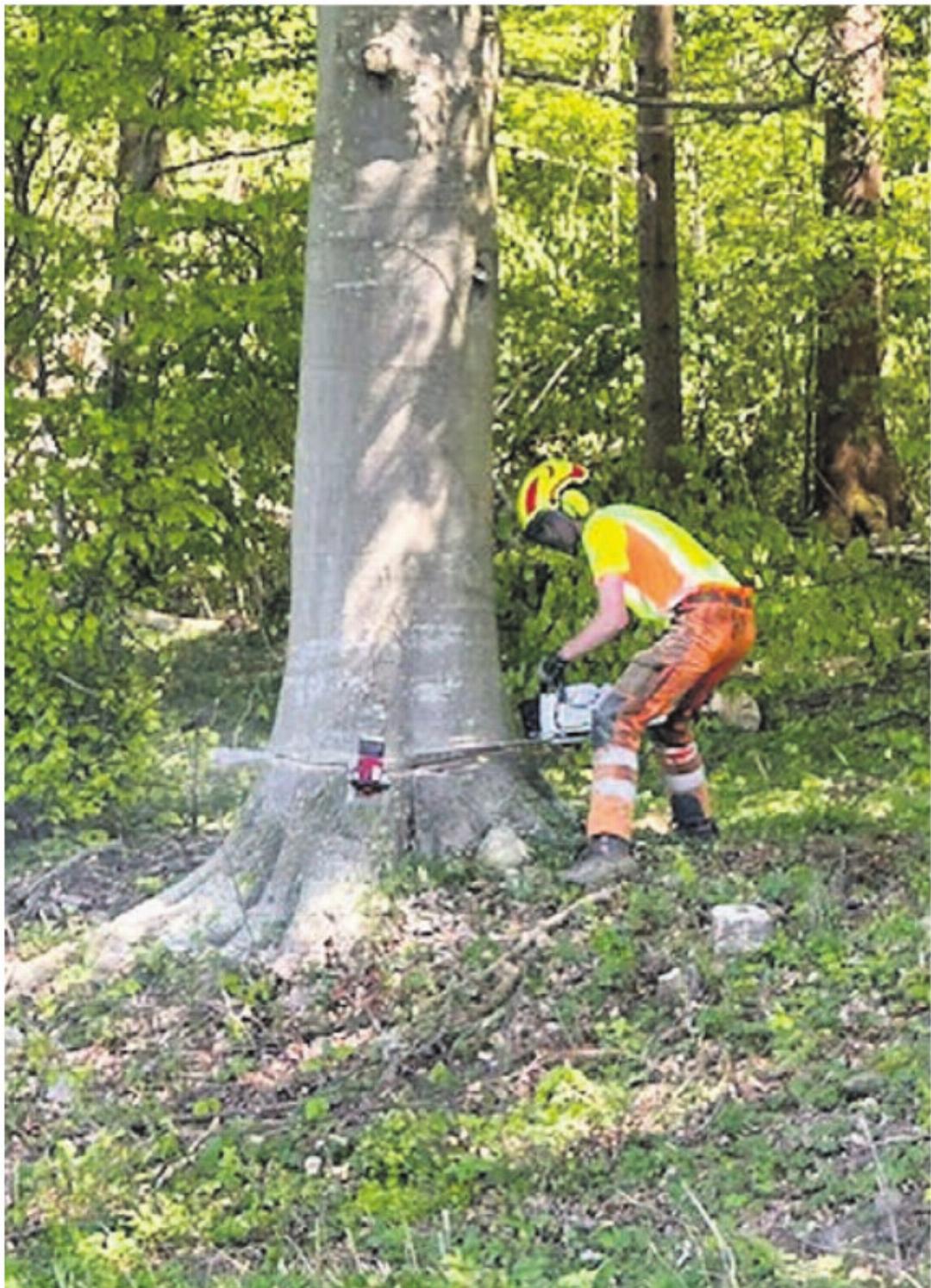 Ein eindrücklicher Moment bot sich den Teilnehmenden, als der im zweiten Lehrjahr lernende Yannick Käppeli eine stattliche Buche fachmännisch fällte. Mit ruhiger Konzentration und präzisen Schnitten demonstrierte er die Kunst des Holzfällens – ein Handwerk, das Können, Erfahrung und Respekt vor der Natur erfordert. An der nächsten Station präsentierte Forstarbeiter Nicola Moon moderne Forsttechnik. Im Zentrum stand der sogenannten Forwarde, ein leistungsstarkes Spezialfahrzeug, das gefällte Bäume aus dem Bestand holt, auflädt und zu den Waldwegen transportiert.